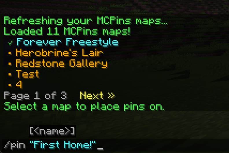Adding pins with the MCPins Fabric mod is so easy and fast, you can add pins while you're flying with Elytra!