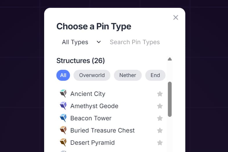 MCPins is built for explorers who want better tools—not cheap shortcuts. The new Biome View gives you a clear look at biome distribution, helping you plan expeditions, locate ideal build spots, find resources, and better understand your terrain. It’s insight—not spoilers.